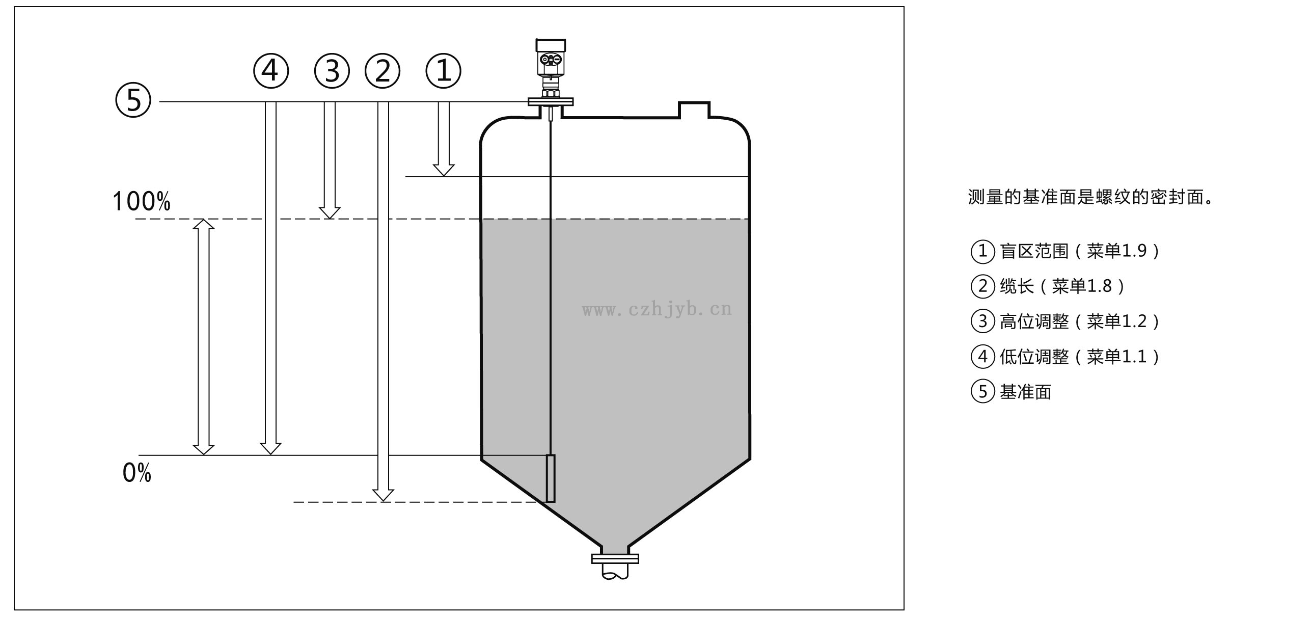 只有物料處于頂部盲區和底部盲區之間時,才能保證罐內物位的可靠測量。