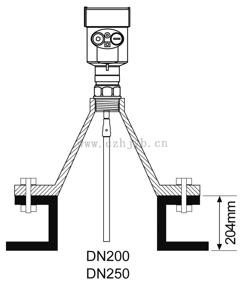 ● 下圖為桿式雷達物位計安裝圖,主要用于液體液位的測量