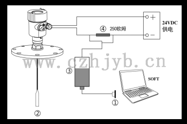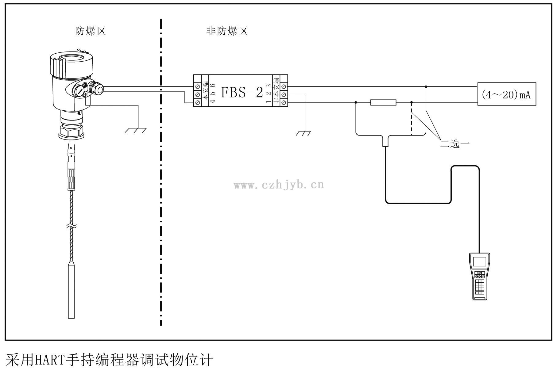 本產品使用時須用安全柵供電。FBS-2安全柵系本產品的關聯設備,防爆形式為本質安全型。防爆標志:[Exia] IIC ,供電電壓(21.6~26.4)V DC,短路電流為135mA,工作電流(4~20)mA。